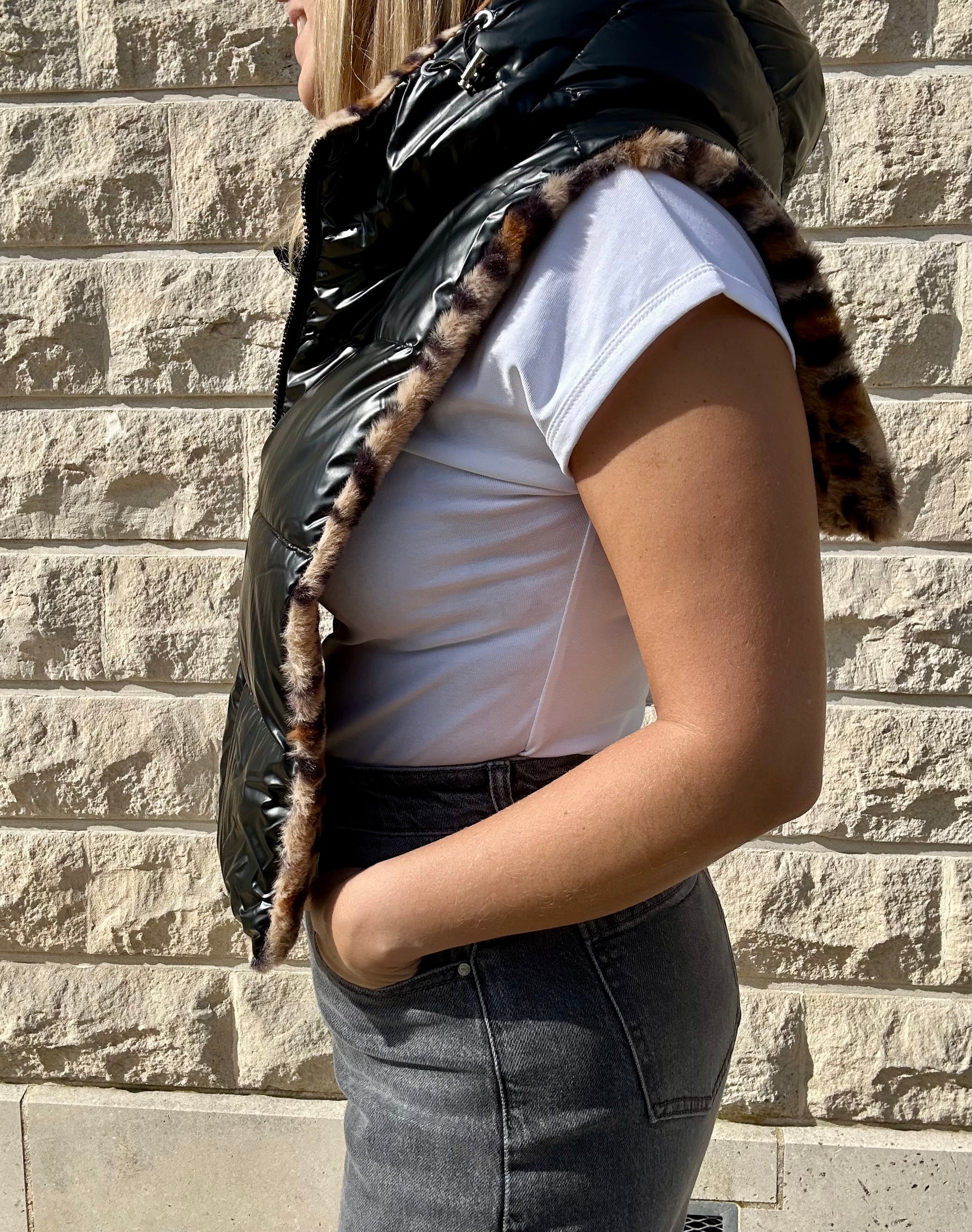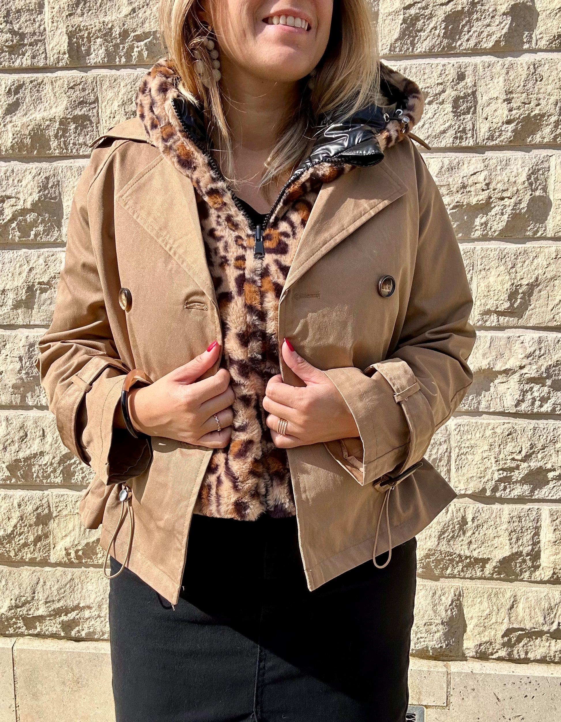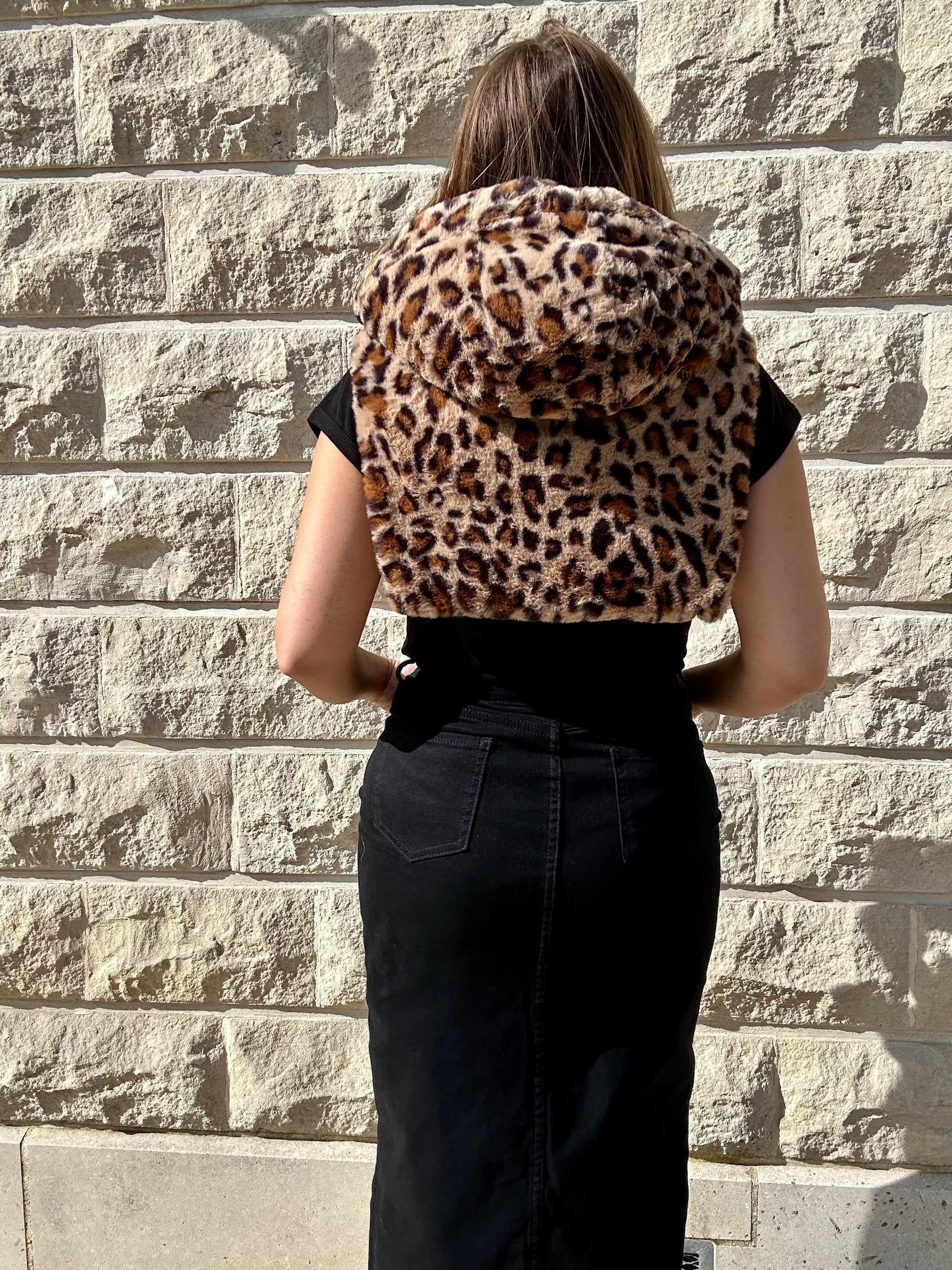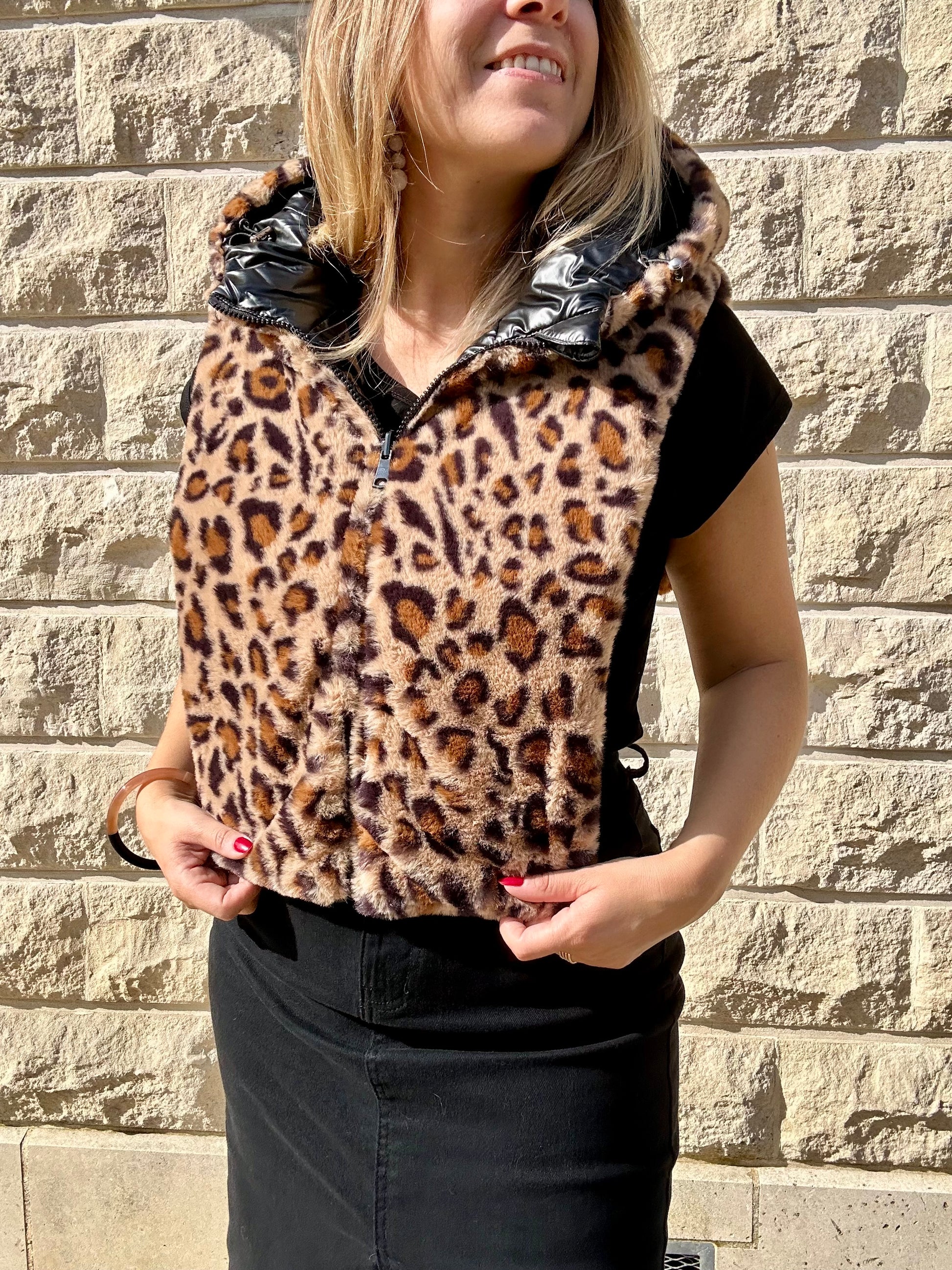Capuche fourrure léopard réversible