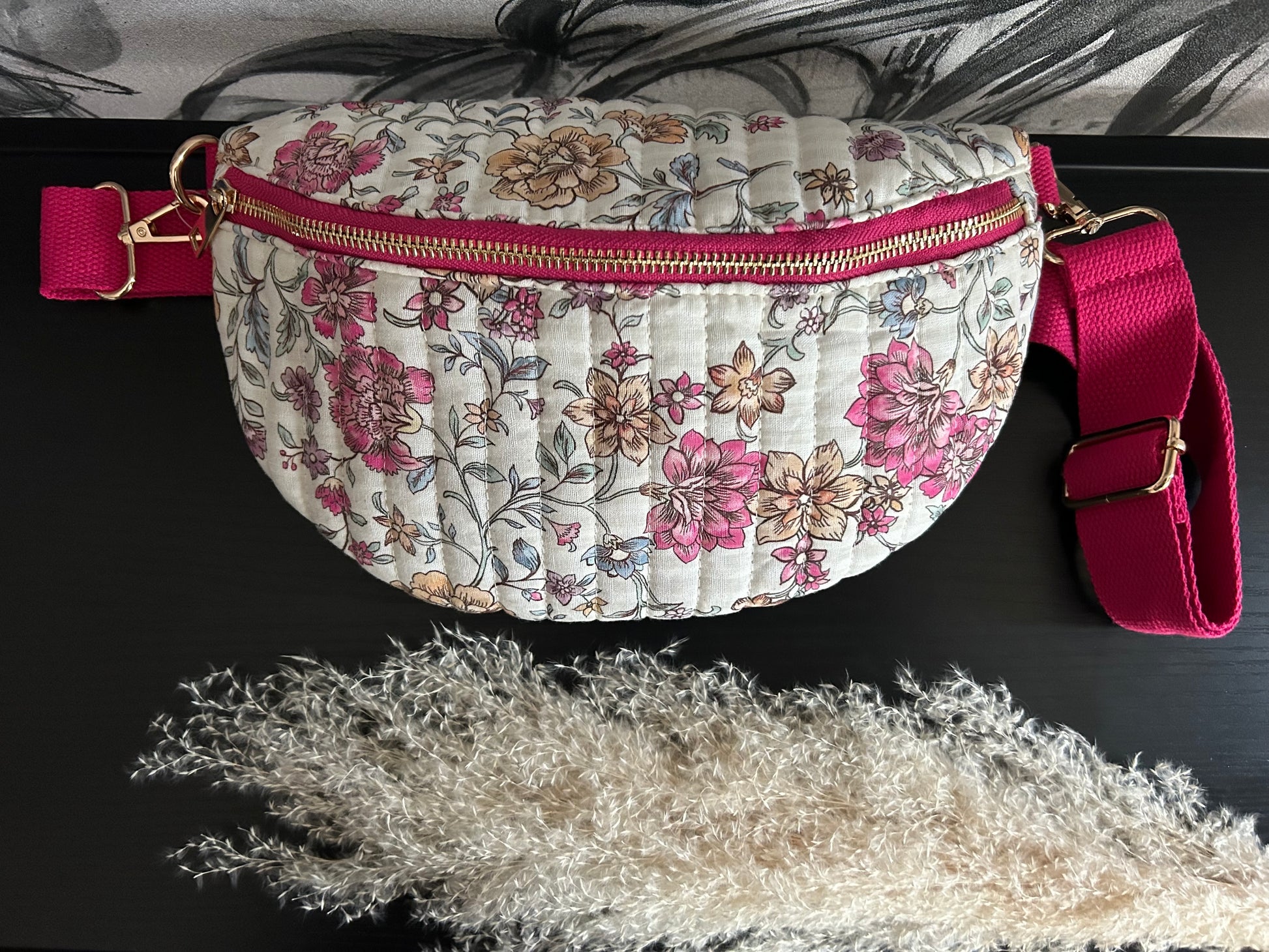 Sac Banane en coton matelassé Liberty fleuri fushia